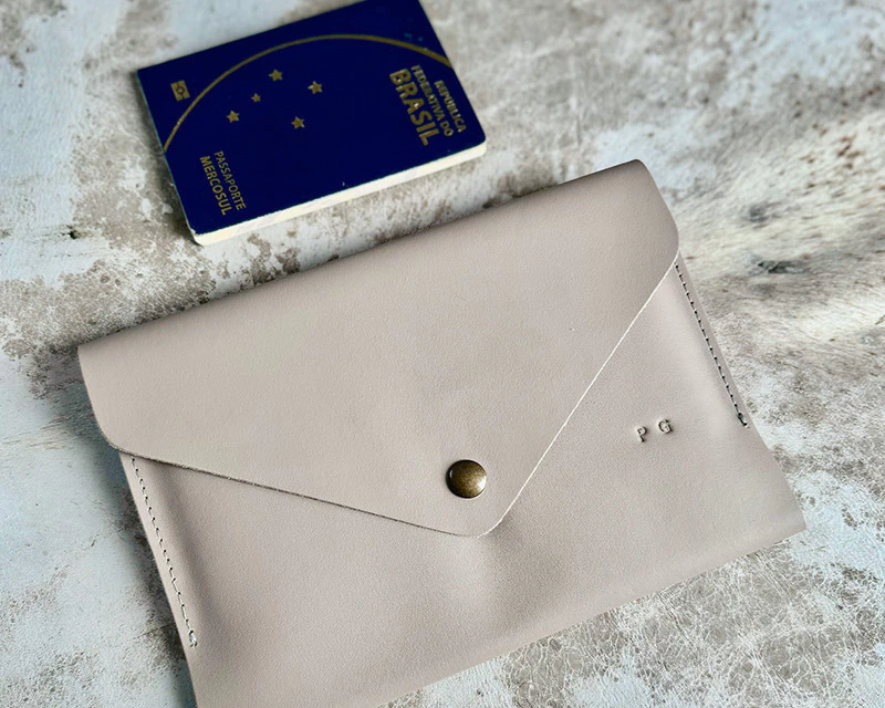 Espaço para 4 passaportes, ticket de viagem, cartões e dinheiro.